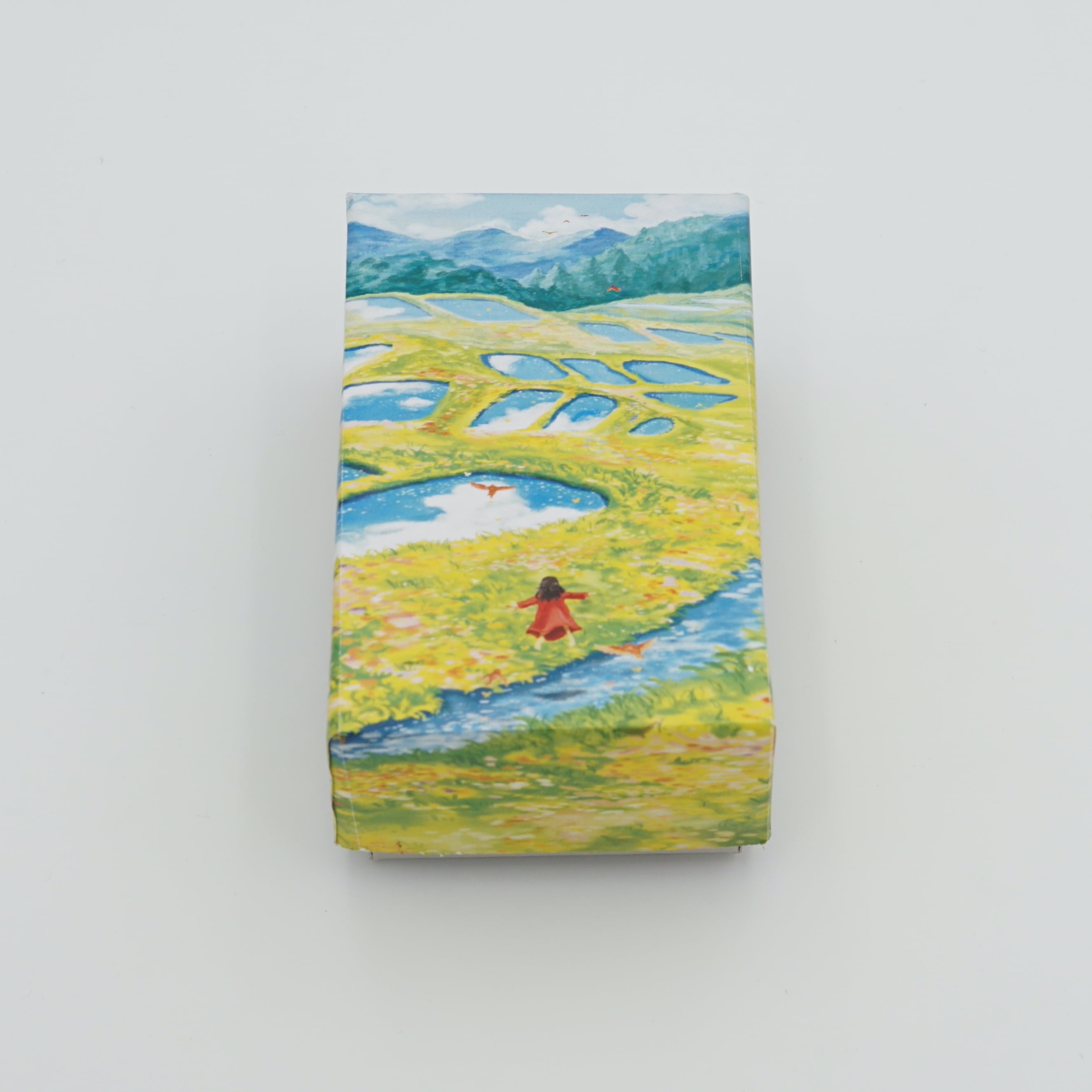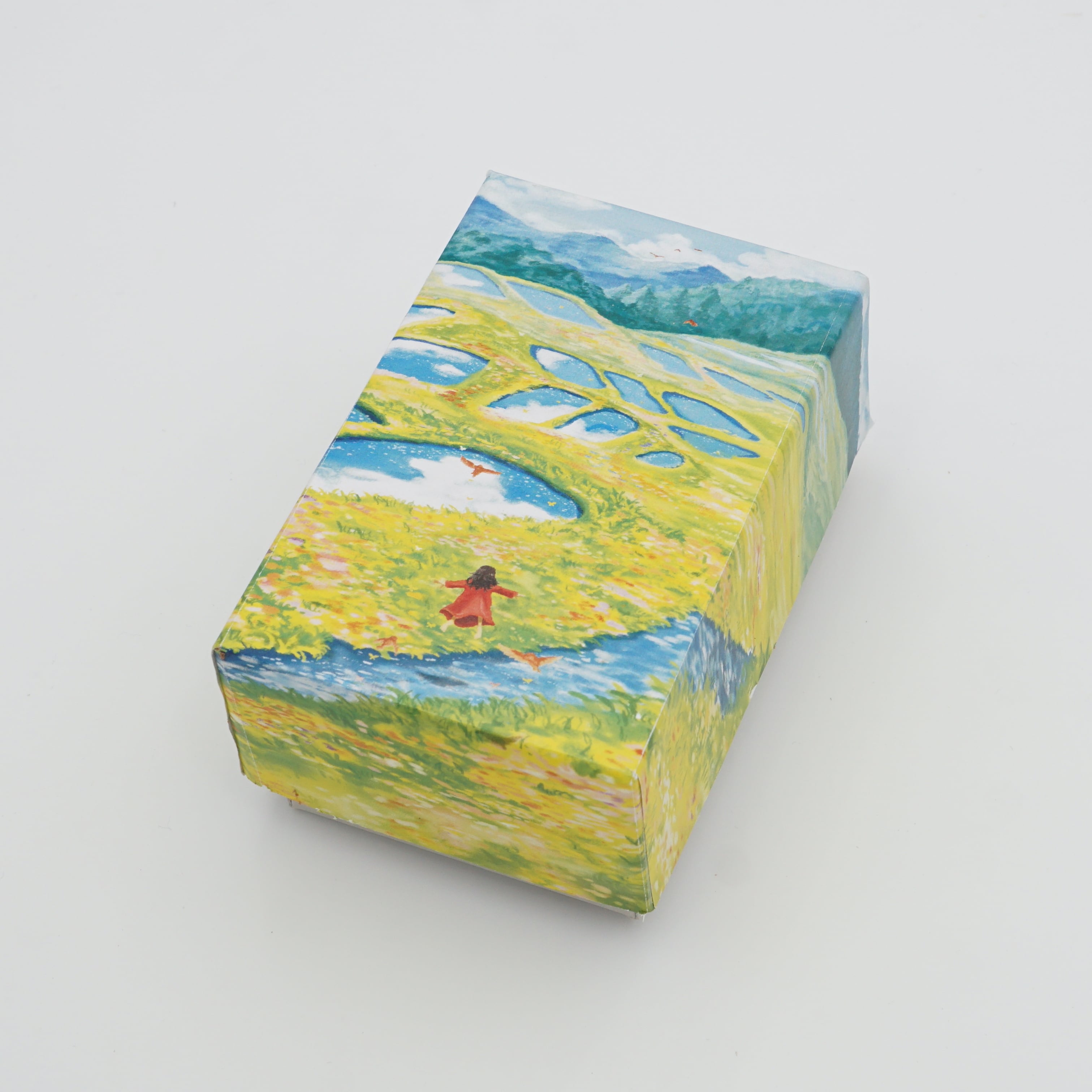 安塚の“春の棚田”をイメージして仕立てた、オリジナルデザインの箱でおとどけします。箱に描かれているのは、春の里山で水鏡となっている棚田や花畑、小さな妖精の女の子が登場する物語です。ご自宅用にはもちろん、大切な方へのギフトとしてもぜひご利用ください。